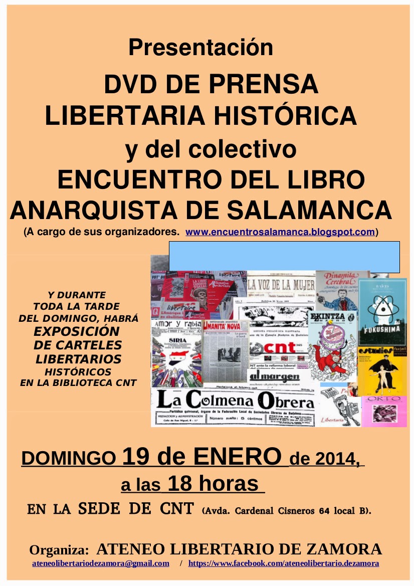A las 18 horas en el local sindical. Presentación del colectivo, del DVD de prensa libertaria histórica que han elaborado y exposición de carteles libertarios durante toda la tarde del domingo.